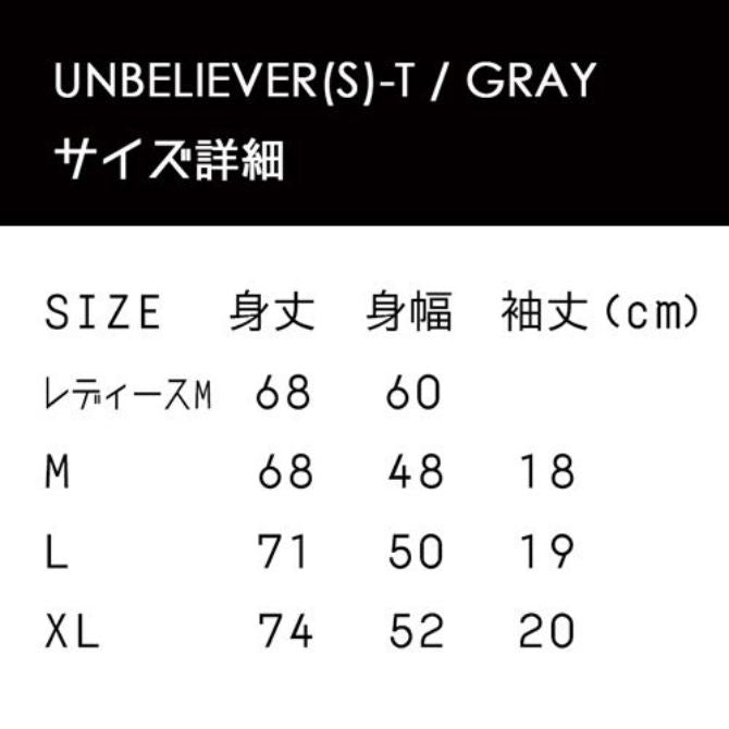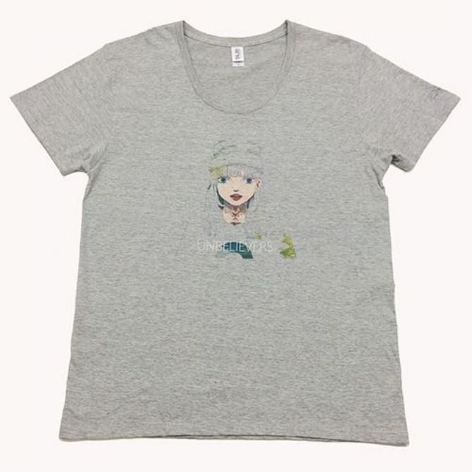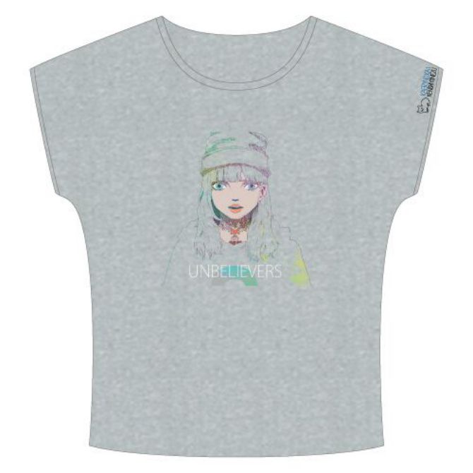 米津玄師描き下ろしイラスト、UNBELIEVER(S)柄のグレーTシャツ。