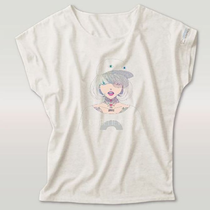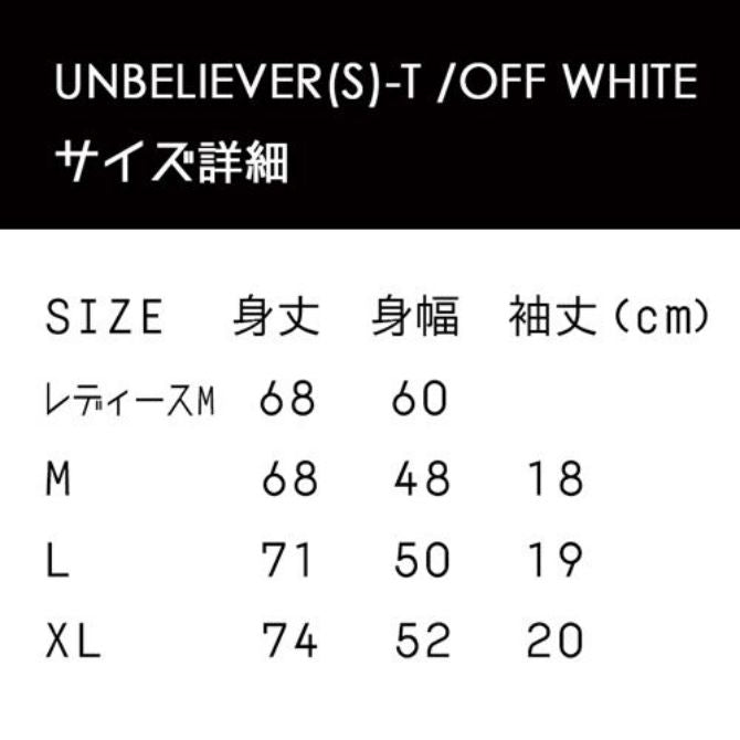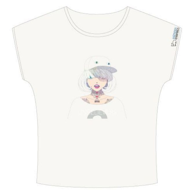 米津玄師描き下ろしイラスト、UNBELIEVER(S)柄のオフホワイトTシャツ。