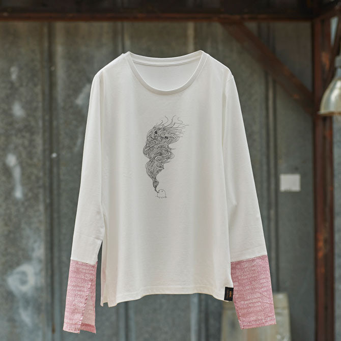 コットンのロングスリーヴTシャツに、さらにシャツ素材のスリーヴを合わせました。