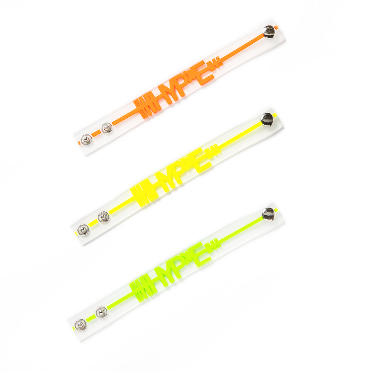 HYPEロゴのラバーバンド。スナップでサイズ調整ができます。