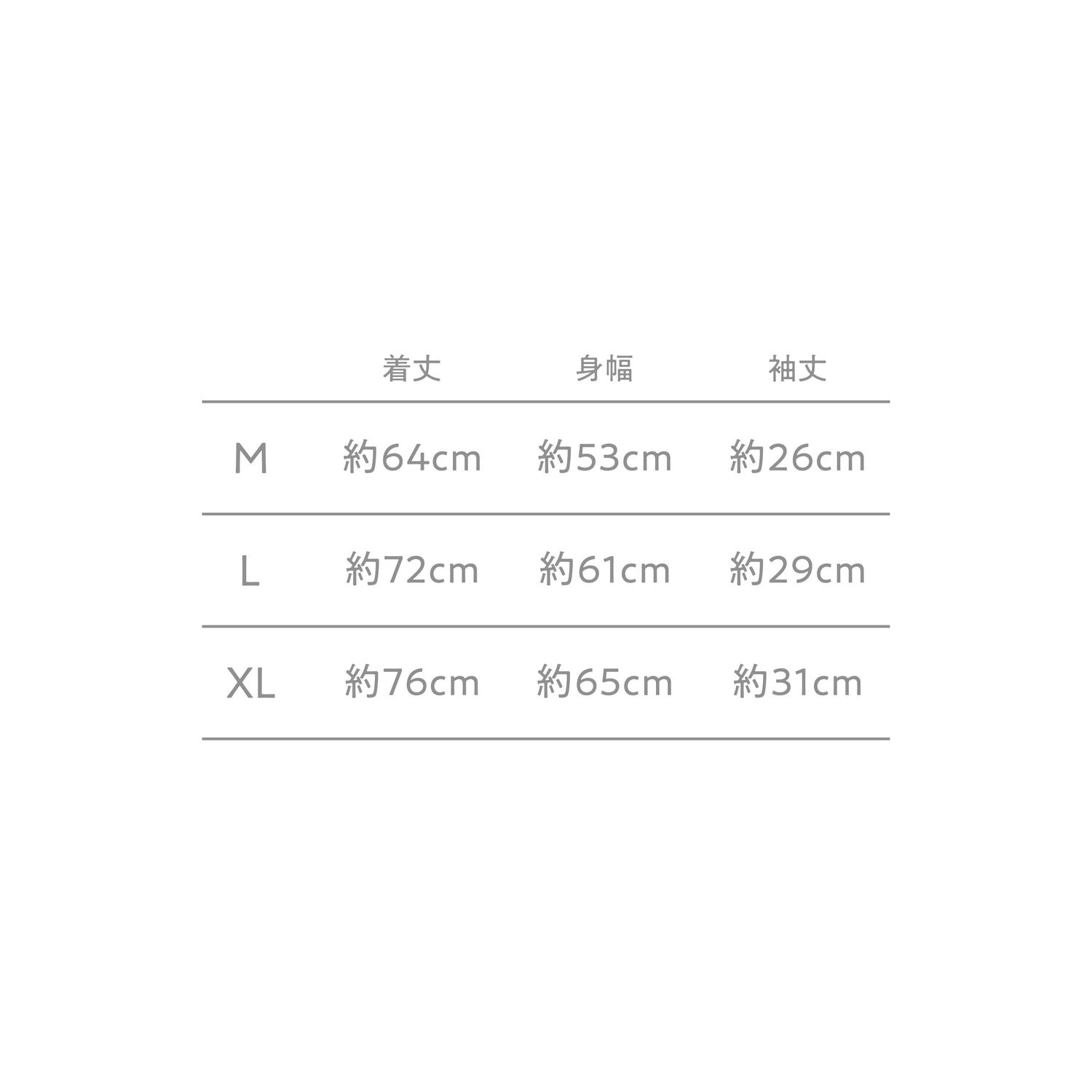 | 着丈 | 身幅 | 袖丈 | |